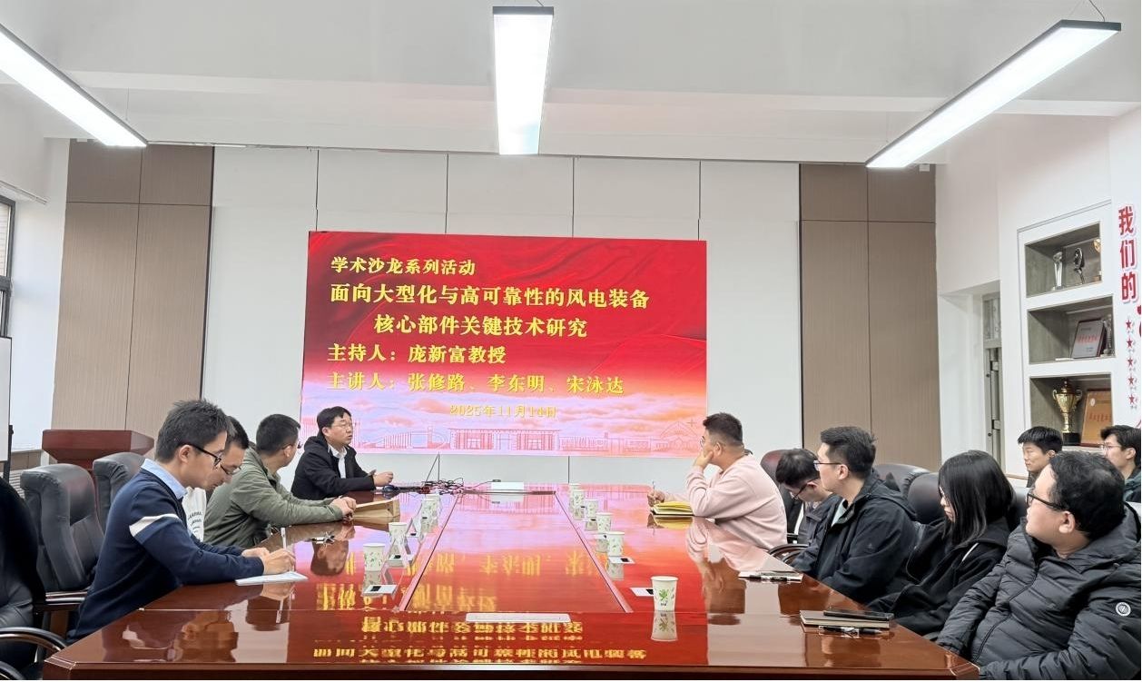 11月14日下午,由科技处与自动化学院联合主办的“面向大型化与高可靠性的风电装备核心部件关键技术”学术沙龙在F325会议室成功举办。机械工程学院张修路、自动化学院李东明、电气工程学院宋泳达三位博士依次带来主题报告,自动化学院庞新富副院长为每场发言做总结点评,现场研究生积极提问互动,氛围热烈。