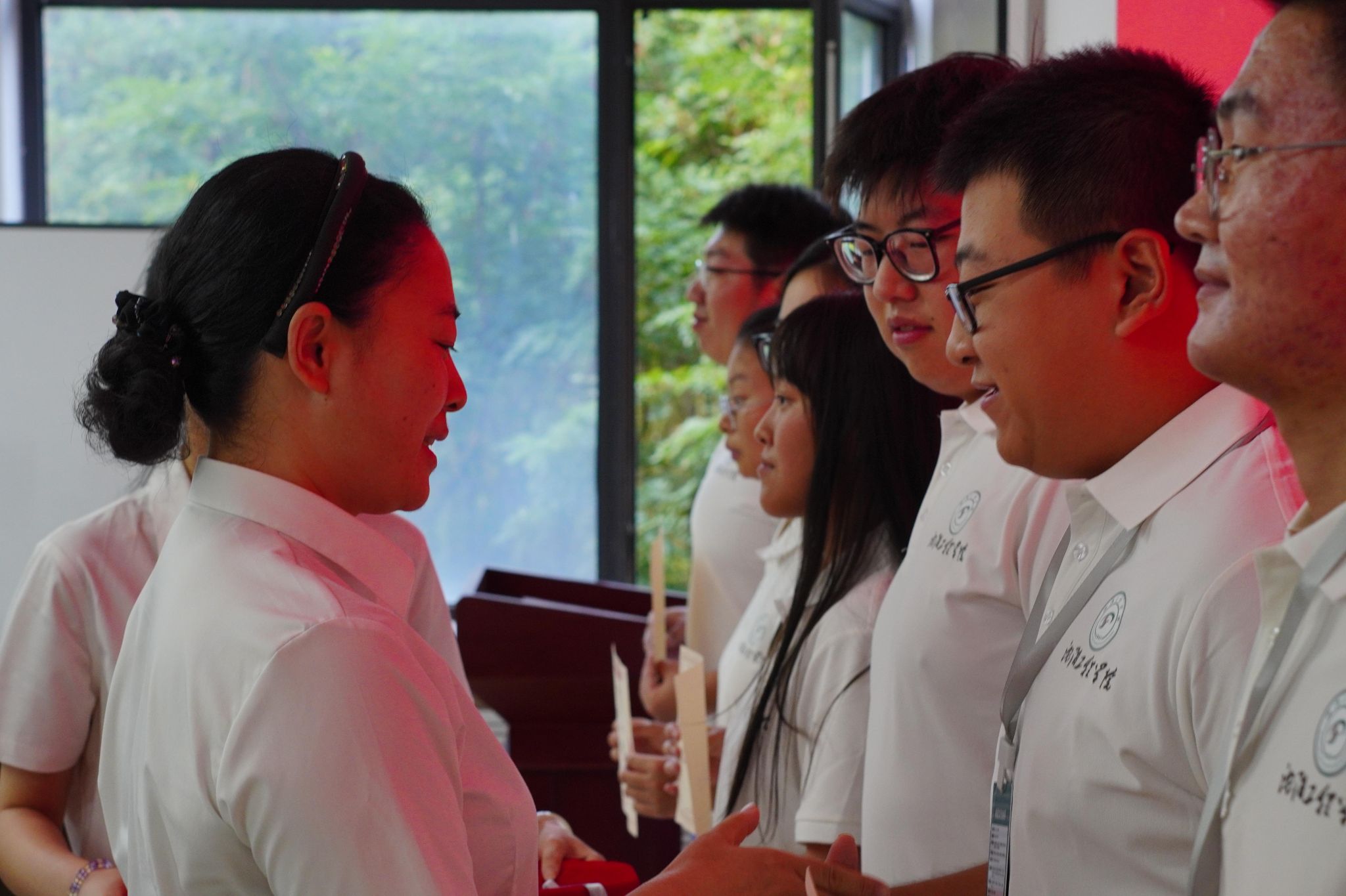 党总支副书记兼副院长张海燕在培训中指出,各班导生在带领新生开展工作期间,需通过组织学唱校歌与红歌培养集体意识,为军训做好准备,并进一步加强新生内务管理,严格检查标准;同时强调导生应以身作则,发挥模范带头作用,营造积极向上、勤奋好学、团结友爱的班级氛围,严禁为谋私利忽视职责本质,切实凝聚集体合力,打造齐心协力的良好局面。