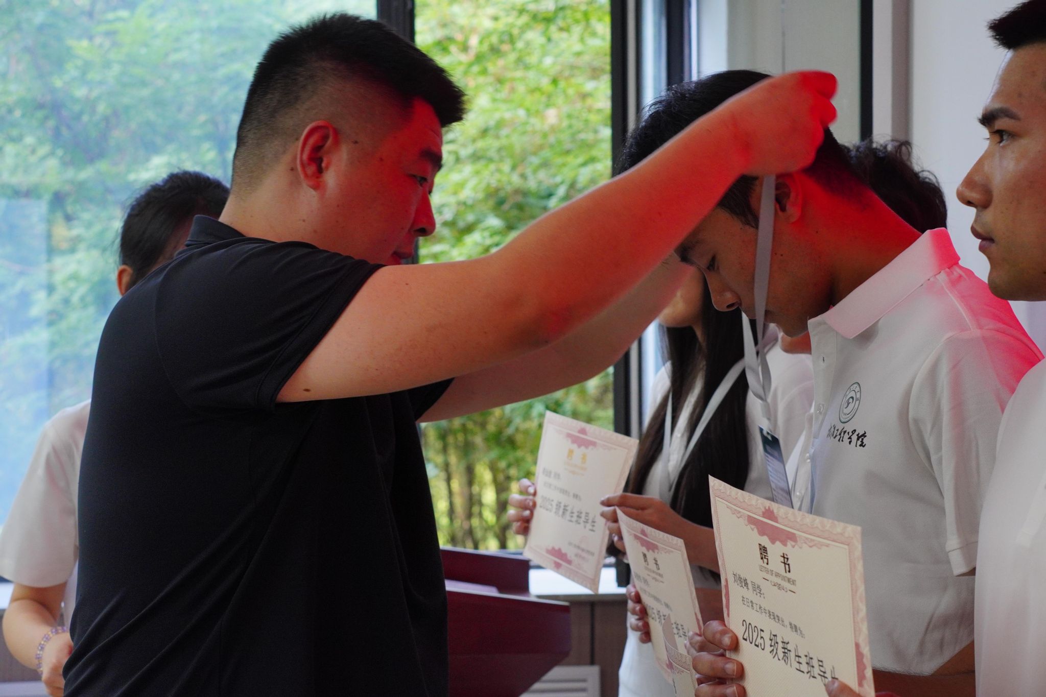 新生辅导员为导生颁发聘书